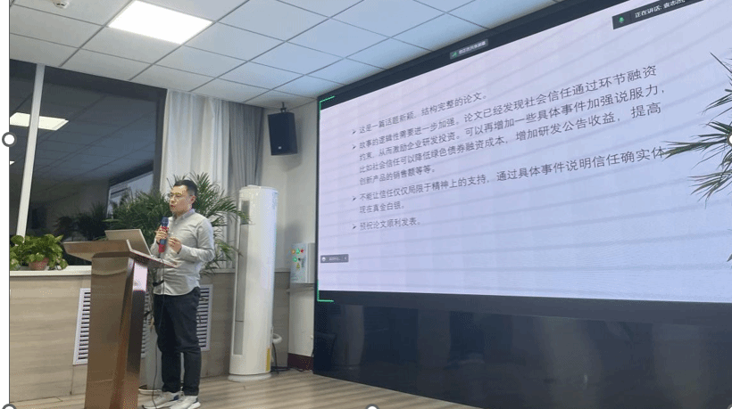 304永利集团官网入口袁志杰硕士生汇报了自己的工作论文,题目为《社会信任与企业研发投资》。