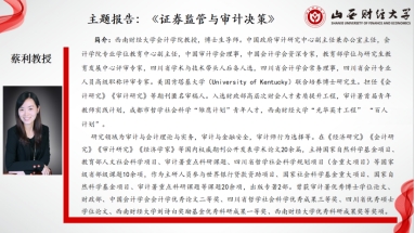 最后,上官泽明副教授对本次论坛进行了总结。蔡教授不仅以其深厚的学术底蕴和独特的视角为我们揭示了审计研究的魅力,更以她严谨的治学态度和细致入微的指导,让我们在学术的道路上更加坚定、自信。永利集团官网师生再次对蔡利教授的学术分享及论文指导表示由衷感谢,同时也祝愿我们304永利集团官网入口的学术事业蒸蒸日上,山财的学子们在学术道路上勇往直前,越走越宽广,不断突破自我,实现更高的学术成就!