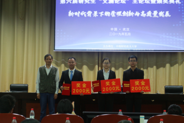 第六届“文澜论坛”设定公共管理、工商管理、财务管理·会计·审计、农林经济管理和管理科学与工程五个论坛主题,共收到稿件450篇,奖励设置为特等奖1篇、一等奖3篇、二等奖6篇、三等奖10篇和优秀奖15篇。