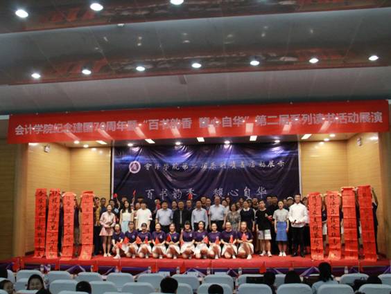 5月28日下午,304永利集团官网入口纪念新中国成立70周年暨“百书韵香,馥心自华”第二届系列读书活动汇报展演在立信报告厅举行,党委副书记张兔元,党委常委、纪委书记刘月社及学校有关部门负责人、学院领导莅临现场观看了本次展演。