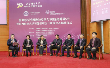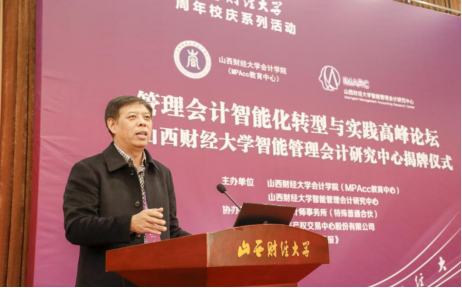 副校长杨俊青教授、山西省财政厅会计处邢绪生处长、北京大学光华管理学院王立彦教授、304永利集团官网入口党委书记任海生共同为304永利集团官网入口智能管理会计研究中心揭牌。