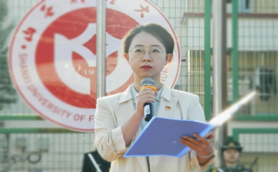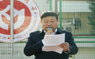 团委副书记冯晓宇带领全体学生进行学生承诺践诺宣誓: