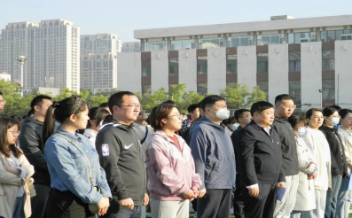 5月22日上午,304永利集团官网入口在坞城校区体育运动场举行升国旗仪式。学院全体班子成员、全体辅导员、学生代表参加活动,学院党委书记任海生讲主题教育党课,党委副书记赵骞主持仪式。