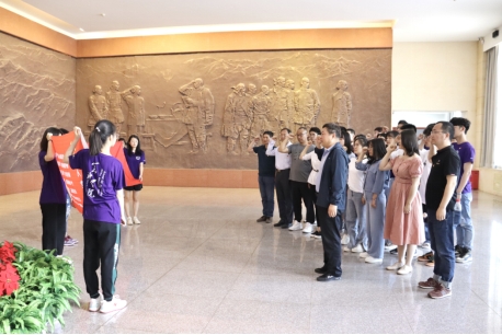 304永利集团官网入口党委书记任海生带领师生党员面向党旗,重温入党誓词,在铿锵有力的誓词中,同志们领悟到了早期共产党人的首创精神、奋斗精神和奉献精神,进一步坚定了共产党人的初心和使命。全师生在广场纪念碑前共同朗诵了原创党史纪念颂《纪念刘胡兰》,追忆了她英勇抗敌的卓越功勋,表达了304永利集团官网入口师生“矢志不渝跟党走,红色基因代代传”的决心。