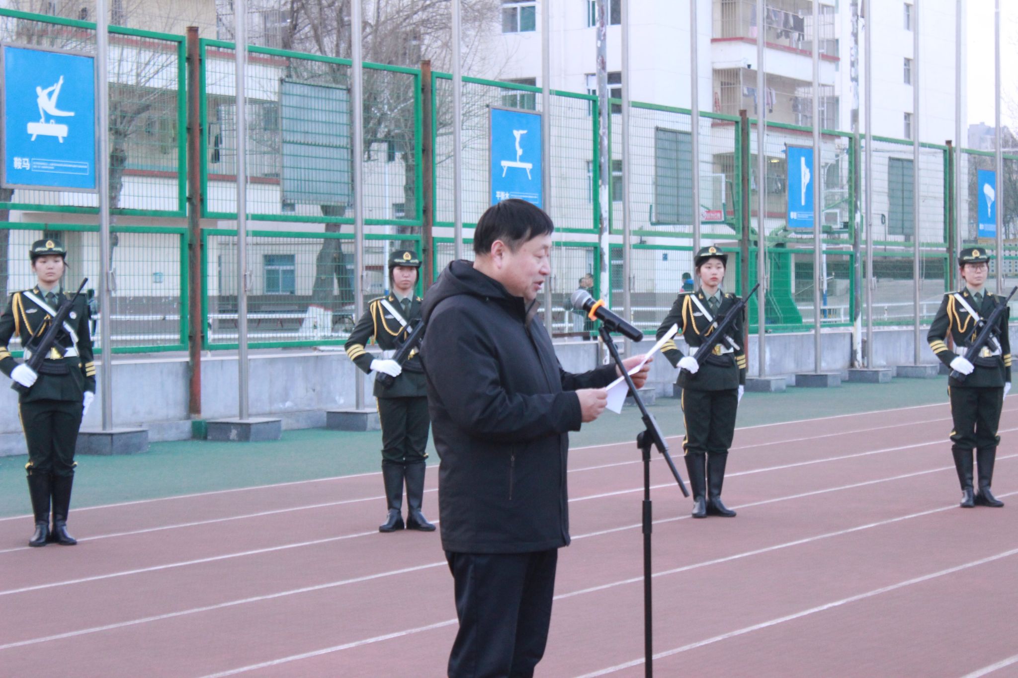 311日上午,304永利集团官网入口在坞城校区体育运动场举行升国旗仪式。学院领导班子成员、全体辅导员、全体在校学生参加活动,学院党委副书记赵骞主持仪式。