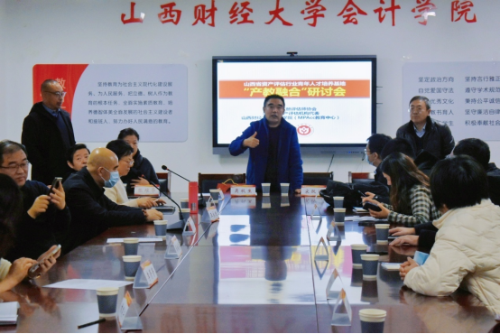 11月30日下午,山西省资产评估行业青年人才培养基地“产教融合”研讨会在永利集团官网304永利集团官网入口会议室举行。山西省注册评估师协会宋跃川秘书长、张维华副秘书长、培训部李菁菁主任,15家省内外资产评估机构的董事长,304永利集团官网入口相关领导、资产评估专业全体教师、本科生和研究生代表参加了研讨会。